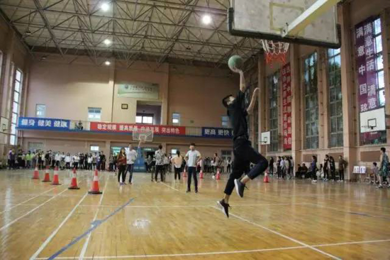 本次赛程分为两部分:男女混合趣味障碍接力赛和三分球大赛。男女混合障碍接力赛以系为单位报名参加,每系两队,每队五人,两男三女。比赛项目按顺序为女生定点投篮,女生与女生夹球跑,男生障碍运球,男生三分球四项。每完成一项才可以开始下一项。赛场上,所有选手精神饱满,等待着哨声示意比赛开始。在女生夹球跑项目中,每个队伍采取的战术都有所不同,这个项目既考验了两个人的运动能力,又需要两个人之间有着极大的默契。决赛比赛项目分别为女生投篮,女生障碍运球,男生障碍运球,男生三分投篮四项。赛场上有些同学因为紧张的缘故,出现了或多或少的失误,但她们在队友与场下观众的加油打气中勇敢战胜了自己,使得比赛顺利进行。紧接着就到了最令人期待的男生三分球大赛,男生三分球大赛要求参赛队员在一个半场完成比赛,每个半场分为五个点,每个点五个球,前四球每球计一分,最后一球为花球计二分。