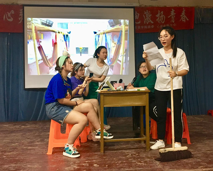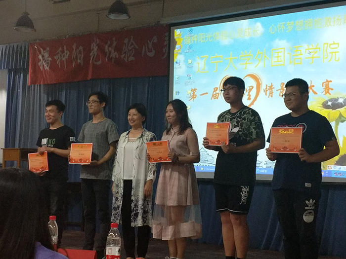 心理咨询室孙铁红老师、院团委毛毳老师出席了本次活动。参赛选手共有五组,分别是商务英语系《变形记》、英语系《从心拥抱你》、西语系《机动人生》、国际法律系《相信自己》以及日语系《苦海无涯回头是我》。五部心理剧,从大学生的身边事出发,讲述遭受生活与情感挫折、面对网络诱惑时,选择同老师朋友家人交流与理解、选择相信自己,最终拥抱世界,感受温暖。一波三折的剧情安排以及主人公内心真诚的独白为大家展现了心理剧独有的魅力与风采。经过激烈的角逐,英语系选送的心理剧《从心拥抱你》脱颖而出,获得一等奖。